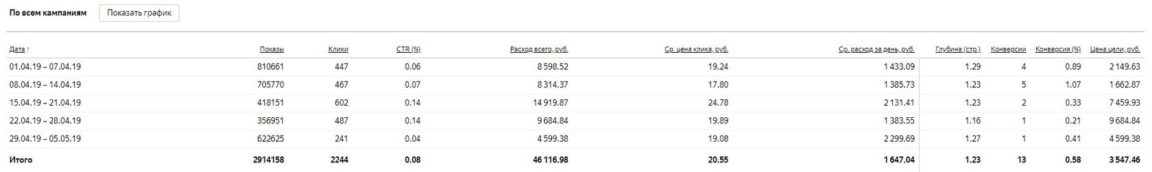 В плане вы найдете следующую информацию: цены, сроки, форматы объявлений, «фишки» и примерную структуру кампаний.